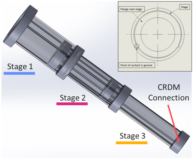 Due to their low power density and high aspect ratio, high-temperature reactors (HTRs) have tall cores that may (Xe-100) or may not (HTR-PM) be contained within a silo embedded in the ground. Incremental increases to silo depth are high cost; thus, we propose a compact design for a small modular HTR control rod that extends telescopically. The technology is applicable to both pebble-bed and prismatic HTRs. This compact component substantially reduces the length of the above-vessel control rod housing compartments, thereby reducing the depth of the silo and offering potentially major cost benefits. The primary objective of this project is to develop the telescopic control rod to the point of being technically feasible and licensable through a multidisciplinary design study encompassing theoretical and experimental work, performed in collaboration with the MADCOR laboratory at UW–Madison, Framatome, X-Energy, INL, and the University of Manchester and Jacobs in the UK.
